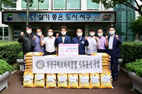 구덕로터리클럽(회장 이종기)은 이달 15일 취약계층을 위한 백미 10㎏ 60포를 부산 서구(서구청장 공한수)에 지원했다.