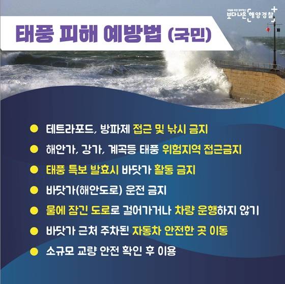 • 태풍 특보 발효 시 바닷가 활동 금지