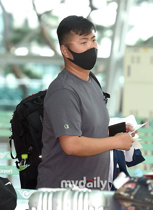 [마이데일리 = 인천공항 유진형 기자] 대한민국 남자 양궁 국가대표팀 김우진이 15일 오후 인천국제공항을 통해 출국하고 있다.