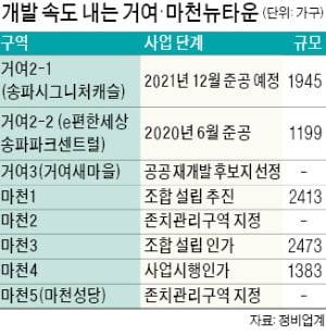 서울 강남권의 유일한 뉴타운(재정비촉진지구)인 송파구 거여·마천뉴타운 개발 사업이 활기를 띠고 있다. 장기간 사업 추진이 지지부진하던 마천1·3·4구역도 시공사 선정에 나서는 등 속도를 내고 있다. 개발 후 1만여 가구가 들어서는 거여·마천뉴타운은 인근 위례신도시(5만 가구)와 더불어 동남권 신흥 주거 타운으로 탈바꿈할 것이란 기대가 크다.