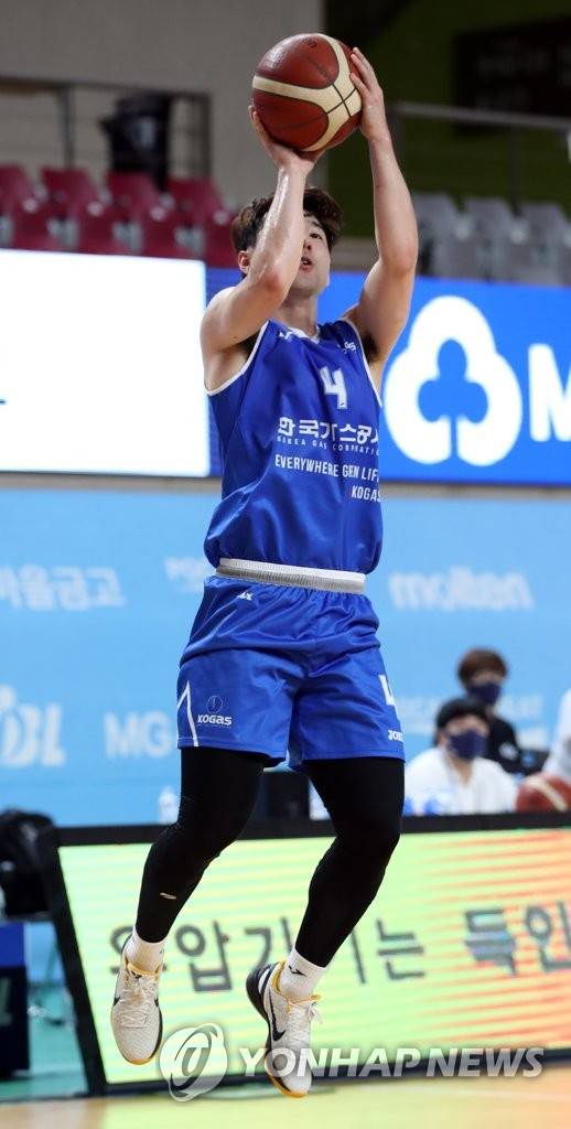 (상주=연합뉴스) 임헌정 기자 = 15일 오후 경북 상주실내체육관에서 열린 2021 MG새마을금고 KBL 컵대회 예선 한국가스공사 대 원주DB 경기.