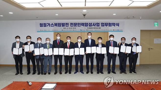 (창원=연합뉴스) 경남도와 창원시가 15일 청정가스발전 전문인력 양성을 위한 업무협약을 했다고 밝혔다. 협약에는 경남도·창원시, 창원대·경남대·경상국립대, 두산중공업·진영TBX·세아창원특수강 등이 참여했다.