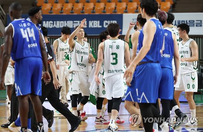 (상주=연합뉴스) 임헌정 기자 = 15일 오후 경북 상주실내체육관에서 열린 2021 MG새마을금고 KBL 컵대회 예선 한국가스공사 대 원주DB 경기.