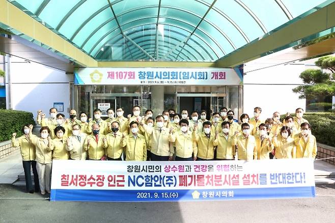 창원시의회(의장 이치우)는 15일 제107회 임시회 제3차 본회의에서 '칠서정수장 인근 폐기물처분시설 설치 반대 결의문'을 채택했다.