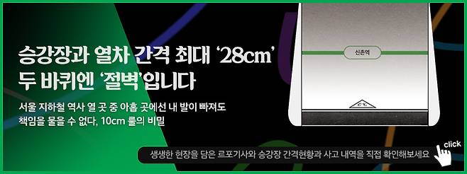 발빠짐 사고는 급감했다. 성중기 국민의힘 서울시의원이 서울교통공사(공사)에서 제출받은 ‘최근 5년간 지하철 발빠짐 사고 발생 현황(연단실족, 휠체어 사고 포함)’ 자료를 보면 2018년 104건, 2019년 96건이던 발빠짐 사고는 지난해 46건으로 반토막 났다. 올해 6월까지는 14건으로 지난해 같은 기간(31건)에 비해 절반 이상 줄었다.