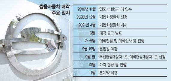 에디슨모터스 컨소시엄, ELB&T 컨소시엄, 인디(INDI) EV 등 3곳이 본입찰에 참여했지만 여전히 자금조달 및 사업비전에 의문이 제기되는 상황이다. 이에 따라 쌍용차와 매각자문사는 3곳 중에서 우선협상대상자를 선정해 다음달 가격협상을 진행하고, 11월에 매각을 매듭지을 계획이지만 채권은행인 산업은행과 서울회생법원이 반대할 경우 재매각 가능성도 배제할 수 없다는 분석이다.