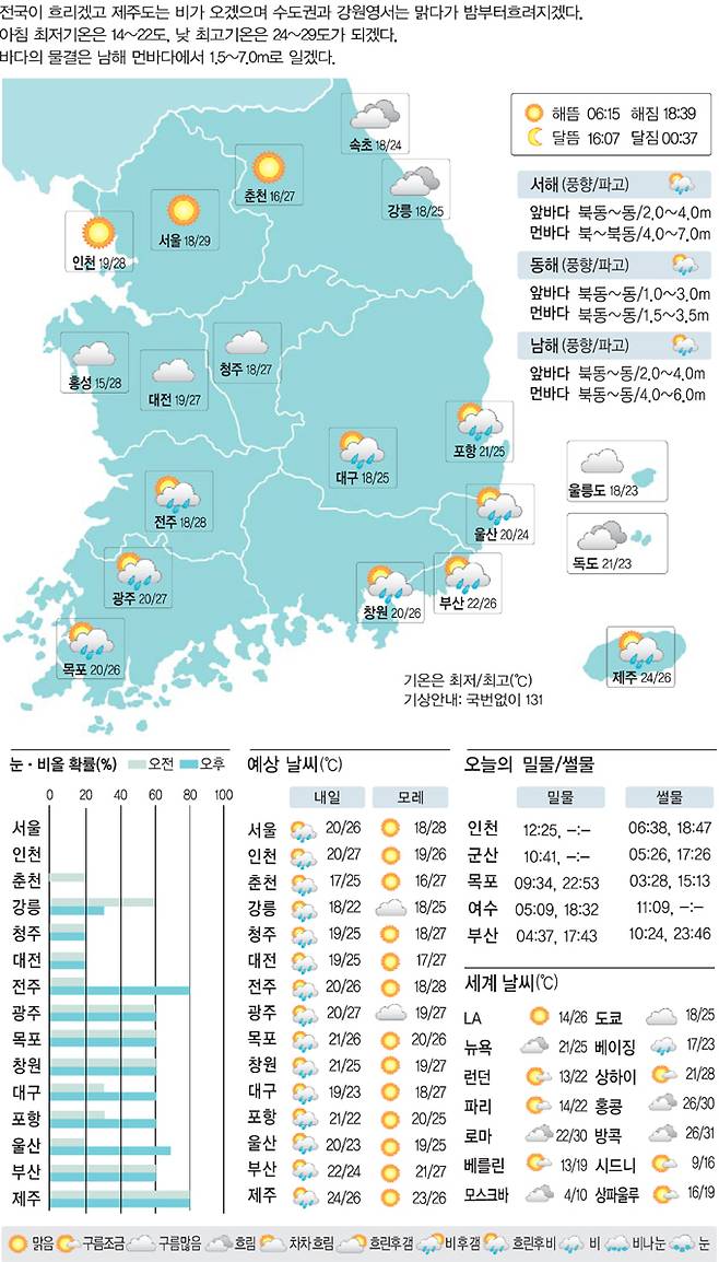 [16일의 날씨] 전국 찌푸린 하늘