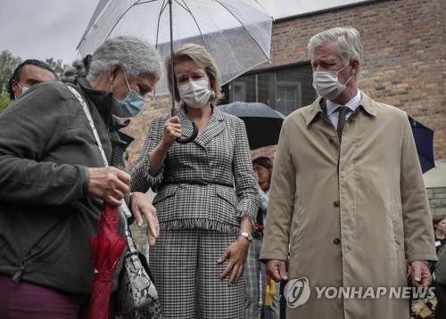 epa09469267 Belgium's King Philippe (R) and Queen Mathilde (C) listen to locals during a visit to people who were affected by the July 2021 floods, in Enzival, Vervier, Belgium, 15 September 2021. Heavy rainfalls in July had caused widespread damage and flooding in parts of Belgium, the Netherlands and western Germany. EPA/OLIVIER HOSLET