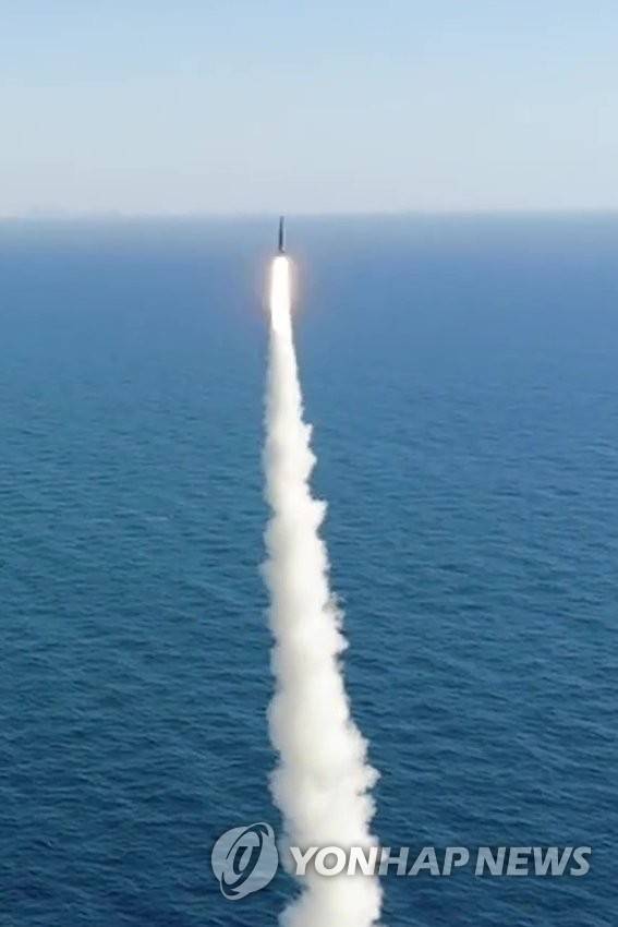 (서울=연합뉴스) 우리나라가 독자 개발한 잠수함발사탄도미사일(SLBM)이 15일 도산안창호함(3천t급)에 탑재돼 수중에서 발사되고 있다.