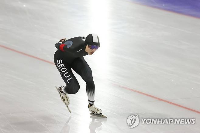 (서울=연합뉴스) 임화영 기자 = 15일 오후 서울 노원구 태릉국제스케이트장에서 열린 2021-2022시즌 국제빙상경기연맹(ISU) 스피드스케이팅 월드컵 파견대표 선발전 겸 SK텔레콤배 제56회 전국남녀 종목별 스피드 선수권대회 남자부 5000m 결승에서 정재원(서울시청 스피드팀)이 질주하고 있다.