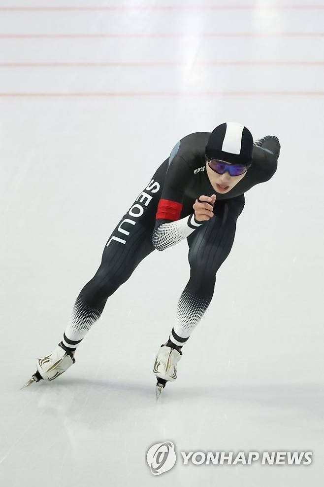 (서울=연합뉴스) 임화영 기자 = 15일 오후 서울 노원구 태릉국제스케이트장에서 열린 2021-2022시즌 국제빙상경기연맹(ISU) 스피드스케이팅 월드컵 파견대표 선발전 겸 SK텔레콤배 제56회 전국남녀 종목별 스피드 선수권대회 남자부 5000m 결승에서 정재원(서울시청 스피드팀)이 질주하고 있다.