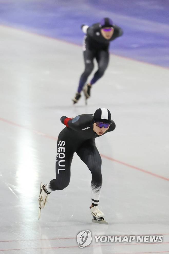 (서울=연합뉴스) 임화영 기자 = 15일 오후 서울 노원구 태릉국제스케이트장에서 열린 2021-2022시즌 국제빙상경기연맹(ISU) 스피드스케이팅 월드컵 파견대표 선발전 겸 SK텔레콤배 제56회 전국남녀 종목별 스피드 선수권대회 남자부 5000m 결승에서 이승훈(서울일반)과 정재원(서울시청 스피드팀)이 질주하고 있다.
