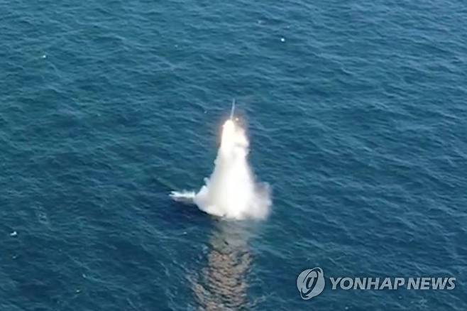 (서울=연합뉴스) 우리나라가 독자 개발한 잠수함발사탄도미사일(SLBM)이 15일 도산안창호함(3천t급)에 탑재돼 수중에서 발사되고 있다.