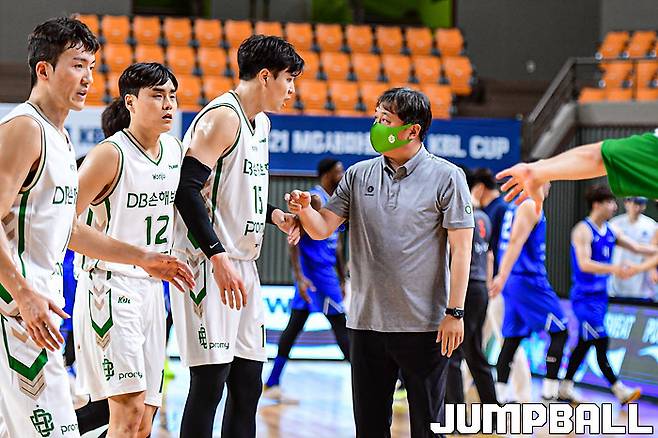 15일 경상북도 상주시 상주실내체육관에서 열린 2021 MG새마을금고 KBL 컵대회 원주 DB와 한국가스공사의 경기, DB 이상범 감독이 선수들에게 지시를 하고 있다.