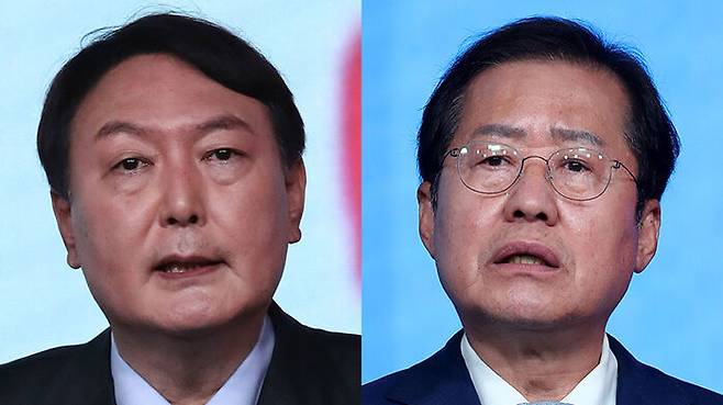 문재인 정부와 대척점에 섰던 윤 전 총장은 그동안 '반문'의 기수라는 상징성을 발판으로 줄곧 야권 지지율 1위를 유지해왔지만, 최근 '윤석열 리스크'를 집중적으로 부각하는 홍 의원의 지지율이 가파르게 상승하면서 선두권 다툼이 치열해졌습니다.