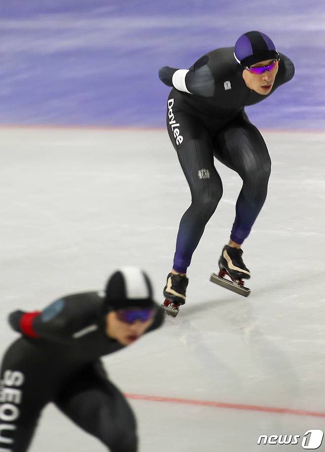 (서울=뉴스1) 안은나 기자 = 15일 서울 노원구 태릉국제스케이트장에서 열린 SK텔레콤배 제56회 전국남녀 종목별 스피드스케이팅 선수권대회 남자 5000m 결승에서 이승훈(서울일반)이 역주하고 있다. 이승훈은 6분40초84의 기록으로 2위를 차지했다. 2021.9.15/뉴스1