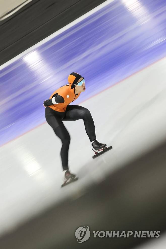 (서울=연합뉴스) 임화영 기자 = 15일 오후 서울 노원구 태릉국제스케이트장에서 열린 2021-2022시즌 국제빙상경기연맹(ISU) 스피드스케이팅 월드컵 파견대표 선발전 겸 SK텔레콤배 제56회 전국남녀 종목별 스피드 선수권대회 남자부 5000m 결승에서 양호준(의정부고등학교)이 질주하고 있다. 2021.9.15