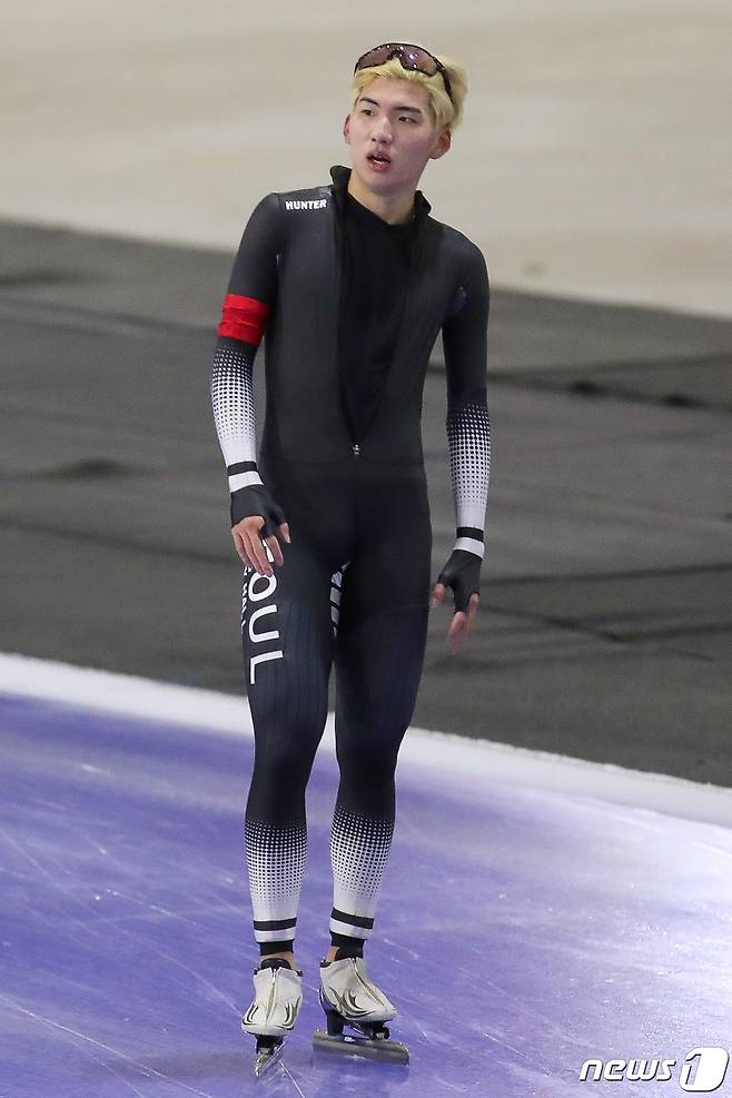 (서울=뉴스1) 안은나 기자 = 15일 서울 노원구 태릉국제스케이트장에서 열린 SK텔레콤배 제56회 전국남녀 종목별 스피드스케이팅 선수권대회 남자 5000m 결승에서 정재원(서울시청)이 결승선 통과 후 숨을 고르고 있다. 정재원은 6분37초36의 기록으로 1위를 차지했다. 2021.9.15/뉴스1