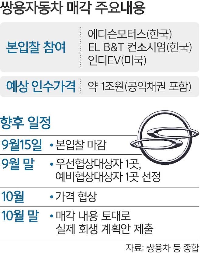 새 주인을 찾기 위한 쌍용자동차의 인수전이 국내파 '에디슨모터스'와 이엘비엔티(EL B&T), 해외파 '인디EV'의 3파전으로 좁혀졌다.