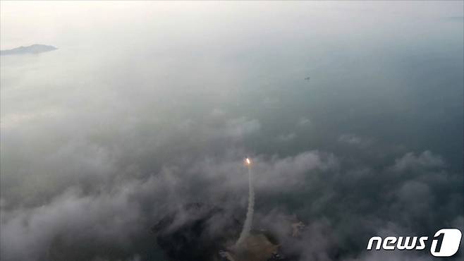 (서울=뉴스1) 이성철 기자 = 15일 초음속순항미사일이 비행하고 있다. (국방부 제공) 2021.9.15/뉴스1