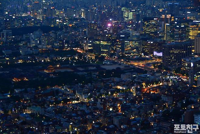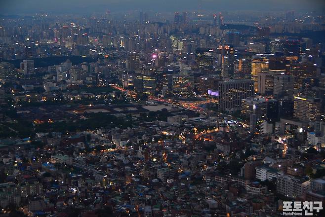 어두움 내리자 불빛 별처럼 반짝이며 평온함 느껴지는 서울의 도심.
