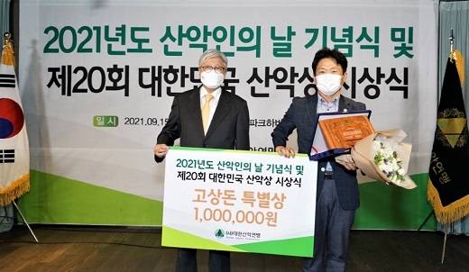 대한산악연맹은 15일 "각 분야별로 가장 뛰어난 업적을 남긴 산악인을 발굴하고 포상하는 2021년도 산악인의 날 기념식 및 제20회 대한민국 산악상 시상식은 산악대상과 스포츠클라이밍상, 고상돈특별상 부문으로 나눠 시상을 진행했다"라고 밝혔다.