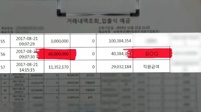 용도를 알 수 없는 현금도 수시로 빠져나갔는데 취재진이 파악한 것만 A 사 2천500만 원, B 사 6억 원입니다.