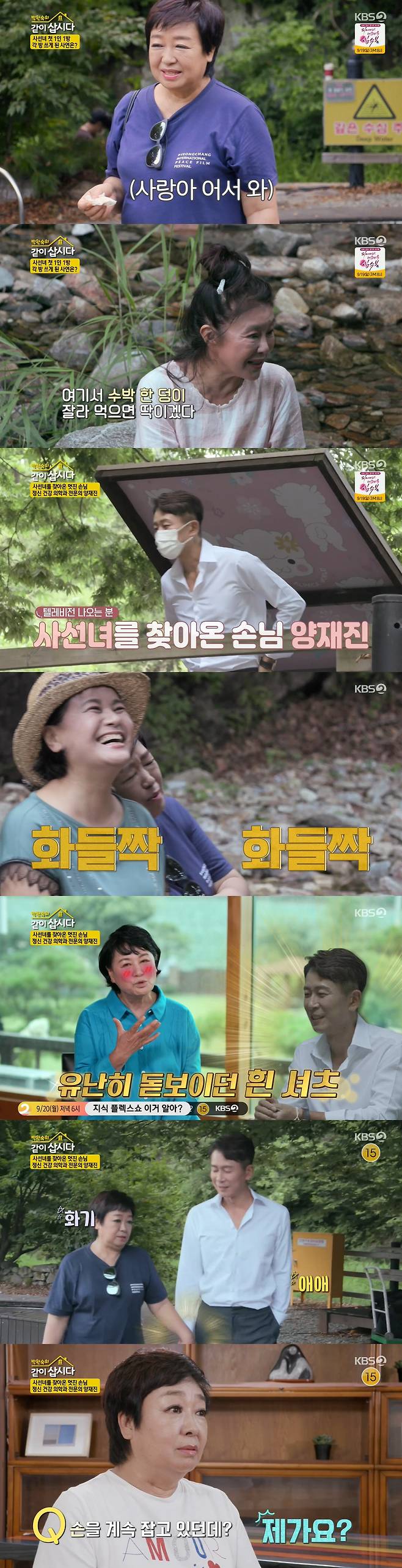 그런가 하면 양재진은 자주 넘어지는 혜은이를 걱정했고, 캠핑을 준비하기 위해 함께 계곡을 빠져나왔다. 그때 두 사람은 함께 손을 잡고 이동해 궁금증을 자아냈다. 혜은이는 제작진에게 "제가 그랬어요? 어머 웃긴다. 무의식에 그런 것 같다"라며 어쩔 줄 몰라했다.
