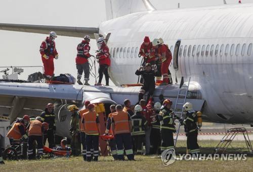 Ukrainian rescue exercise in Kiev's airport Boryspil.