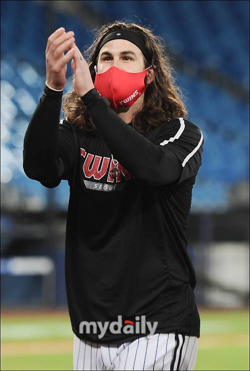[마이데일리 = 대구 송일섭 기자] LG 켈리가 15일 오후 대구광역시 고산동 대구삼성라이온즈파크에서 진행된 '2021 프로야구 KBO리그' 삼성라이온즈 vs LG트윈스의 경기에서 5-2로 승리한 뒤 팬들을 보며 환호하고 있다.