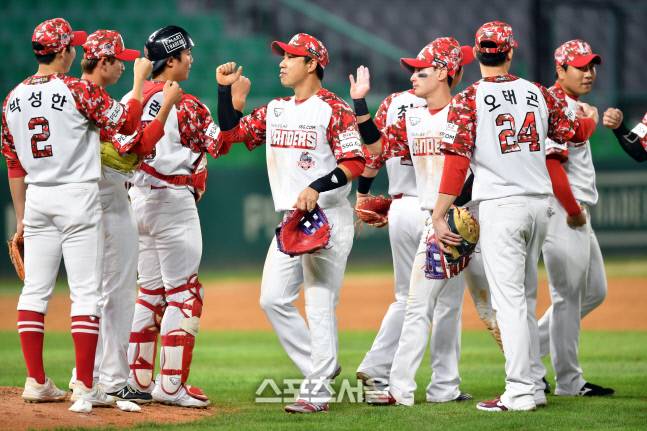 9-6으로 역전승한 랜더스 '쓱 뒤집었죠!'[포토]