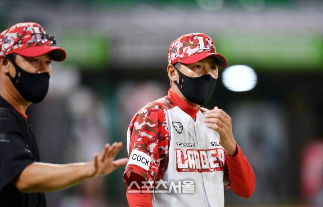 9-6으로 역전승 자축하는 김원형 감독[포토]