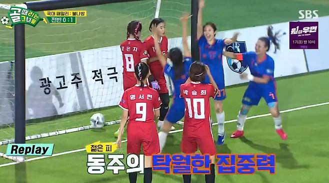 박선영의 절묘한 크로스를 조하나가 골대로 몰고 간 가운데 서동주가 이를 골로 연결시킨 것. 그야말로 삼각편대의 합작 골에 배성재와 이수근도 감탄을 쏟아냈다.