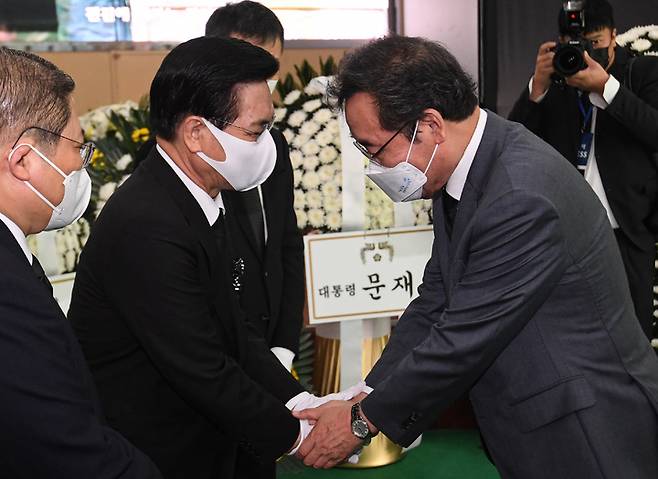 [서울=뉴시스] 국회사진기자단 = 이낙연 더불어민주당 대선 경선 후보가 15일 서울 여의도순복음교회 대성전 1층 베다니홀에 마련된 고 조용기 원로목사의 빈소에서 조문을 하고 있다. 2021.09.15. photo@newsis.com *재판매 및 DB 금지