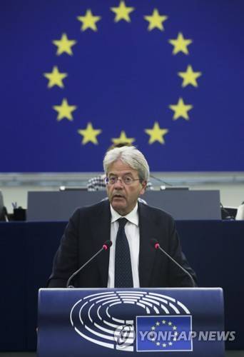 epa09469582 European Economy Commissioner, Paolo Gentiloni, addresses the European Parliament plenary session in Strasbourg, France, 15 September 2021. EPA/YVES HERMAN / POOL MAXPPP OUT