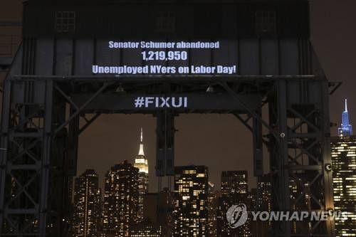 IMAGE DISTRIBUTED FOR CPD ACTION - Unemployed New Yorkers blast Senator Schumer for abandoning them as benefits end, Tuesday, Sept. 14, 2021, in New York. For more information go to twitter.com/unemployedact. (Jason DeCrow/AP Images for CPD Action) THIS PHOTO WAS TAKEN BY AP IMAGES FOR CPD ACTION