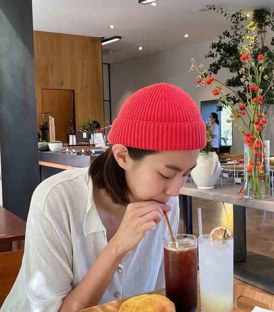 공개된 사진 속 유이는 한적한 카페를 찾아 디저트와 음료를 즐기는 모습.