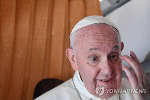 epa09469631 Pope Francis speaks with journalists aboard an Alitalia aircraft enroute back to Rome from Bratislava's Milan Rastislav Stefanik International airport in Bratislava, Slovakia, 15 September 2021. The pontiff ended his four-day apostolic journey to Slovakia. EPA/TIZIANA FABI / POOL