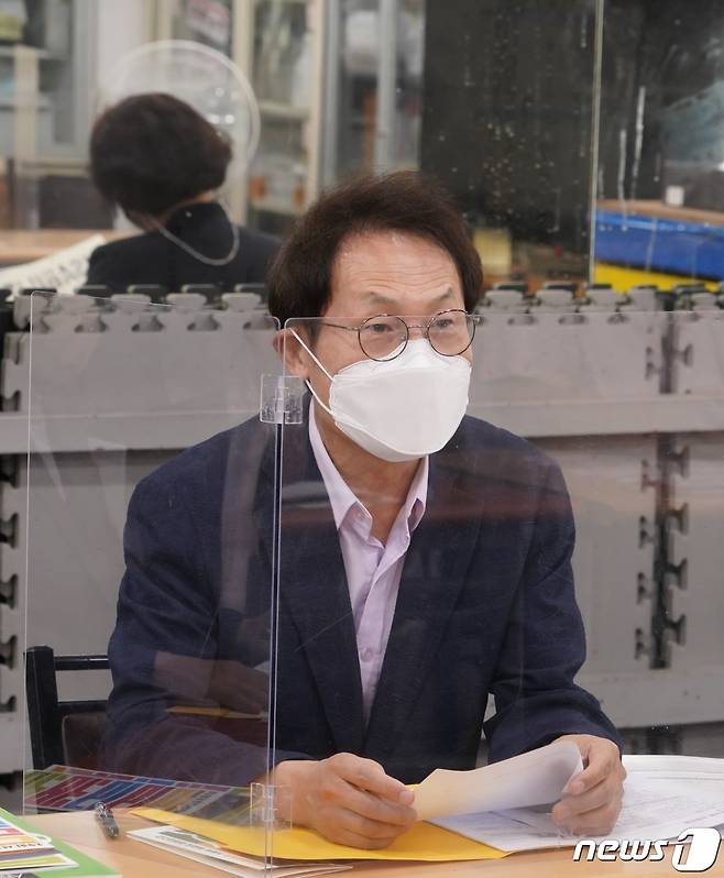 (서울=뉴스1) 이성철 기자 = 조희연 서울시교육감이 15일 오후 서울 종로구 장애인평생교육시설 노들장애인야학을 방문해 장애인들의 평생교육 발전을 위한 간담회를 하고 있다. (서울시교육청 제공) 2021.9.15/뉴스1