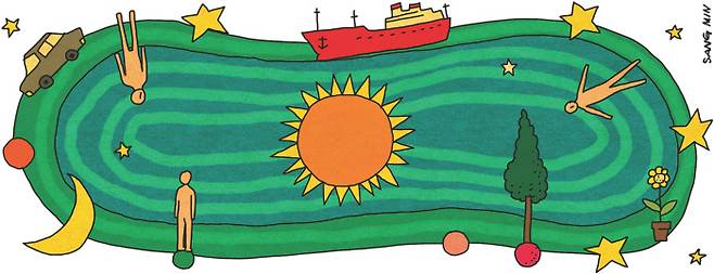 지속 가능성이 요즘 중요한 화두다. 먼 미래에도 현재의 우리 모습이 지속되려면 순환이 필수다. 1%의 경제성장률이면 많은 이가 경기침체를 말하지만, 이렇게 낮은 성장률도 1000년을 이어가면 무려 2만배로 경제가 성장한다. 경제든, 인구든, 영원한 성장은 지속 가능하지 않다. 먼 미래를 상상한다. 사람들의 삶의 질을 경제성장률로 측정하는 것이 오래전 과거가 된 미래, 양적인 성장 없어도 모든 이의 행복이 지속되는 미래를 떠올린다. 배출한 만큼 흡수하고, 만든 만큼 소비하는, 모든 영역의 넷제로 없이 인류의 오랜 지속은 불가능하다.
