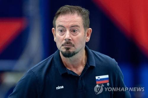 epa09470309 Head coach of Slovenia Alberto Giuliani reacts during the men's EuroVolley 2021 quarterfinal match between Czech Republic and Slovenia in Ostrava, Czech Republic, 15 September 2021. EPA/LUKAS KABON
