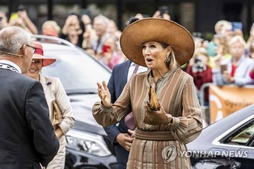 epa09470411 Dutch Queen Maxima arrives at the House of Culture and Administration of the municipality of Midden-Groningen, in Hoogezand, The Netherlands, 15 September 2021. Queen Maxima opened the building, which houses a library, a music school, the Kielzog theater and the town hall. EPA/VINCENT JANNINK