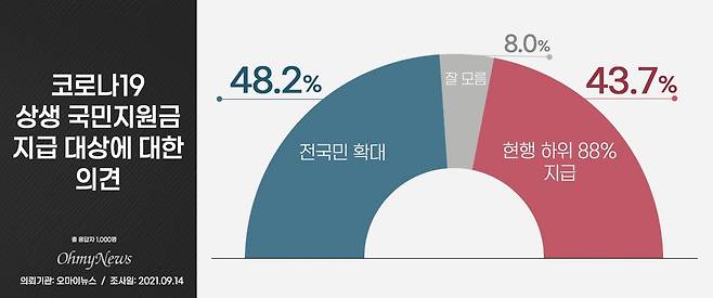 [여론조사] 국민지원금 "지금이라도 전국민 확대" 48.2%.. "88% 현행대로" 43.7%