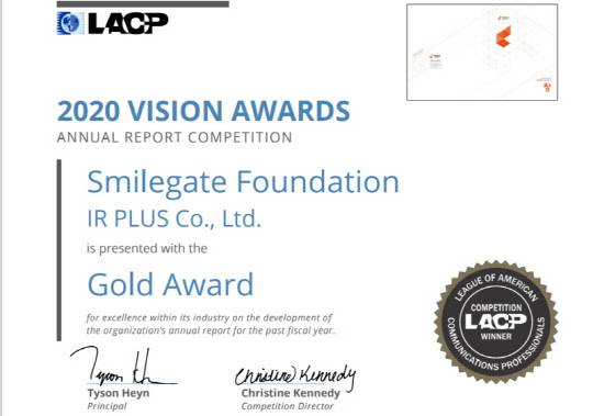 스마일게이트 희망스튜디오가 미국 커뮤니케이션 연맹(LACP)이 주관하는 '2020 비전 어워드'에서 비영리 부문 금상을 수상했다고 16일 밝혔다.