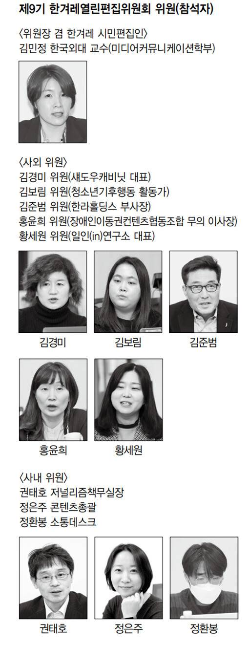9기 열린편집위원들은 지난 8~9월 <한겨레>가 생산한 콘텐츠 가운데 16건의 ‘좋은 기사’를 추천했다. 이 가운데 위원들이 가장 높은 점수를 준 기사는 ‘젠더 데이터, 빈칸을 채우자’ 기획 기사였다. 이 기사를 추천한 황세원 위원은 “짚어주지 않았으면 몰랐을 젠더 데이터 공백 문제를 제대로 짚은 기사”라고 평가했다.