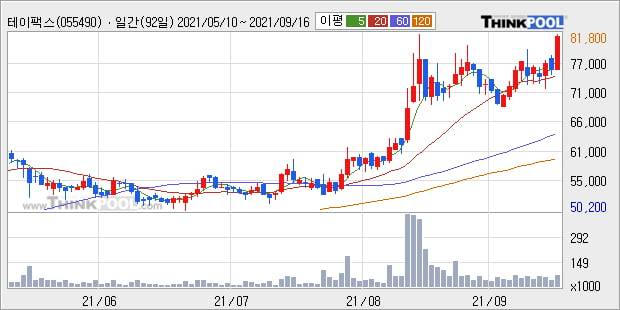 '테이팩스' 52주 신고가 경신, 단기·중기 이평선 정배열로 상승세