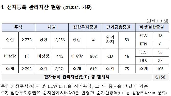 전자증권제도가 시행된 이후 전자등록 관리자산(잔고)과 이를 이용하는 발행회사가 지속해서 늘어난 것으로 나타났다.