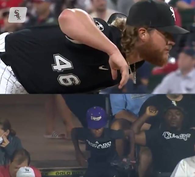 [스포탈코리아] 시카고 화이트삭스 크레이그 킴브렐이 최근 그의 투구폼을 따라 해 화제가 된 10살 팬을 만났다.