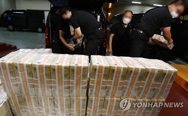 (서울=연합뉴스) 16일 오전 서울 강남구 역삼동 한국은행 강남본부에서 추석 자금방출이 이뤄지고 있다. 2021.9.16 [사진공동취재단]