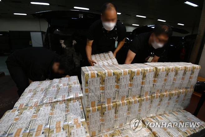(서울=연합뉴스) 16일 오전 서울 강남구 역삼동 한국은행 강남본부에서 추석 자금방출이 이뤄지고 있다. 2021.9.16 [사진공동취재단]